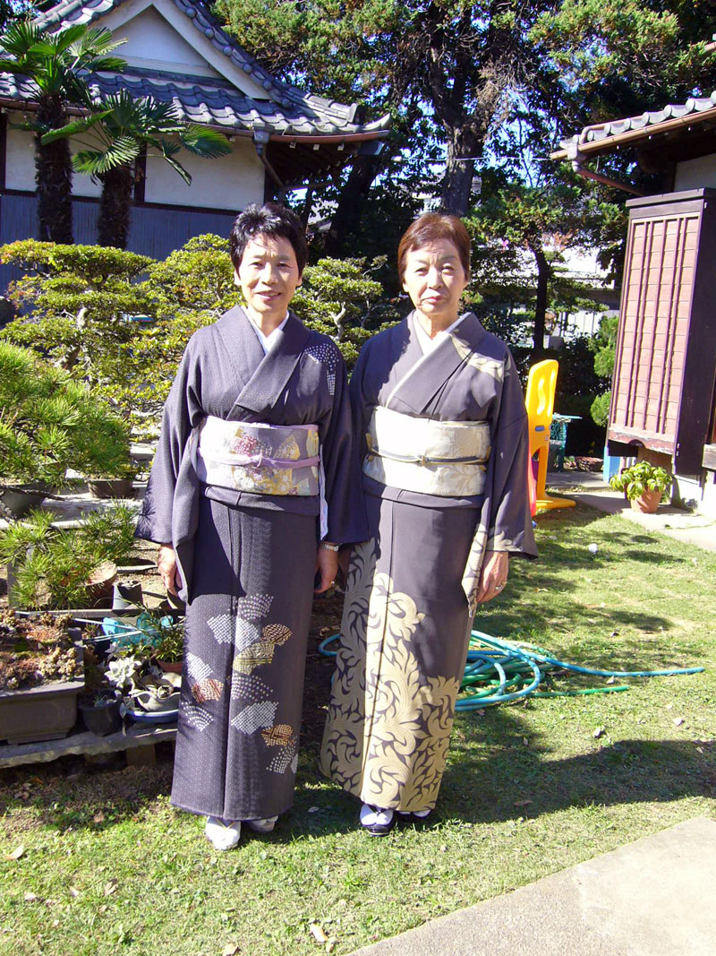秋晴れの中、添え釜のお茶会に日本橋に出かけるところです。皆さん、とてもお似合いになっていて、やはり着物はいいですね。右の方はエンジ色の無地に格調高い袋帯、真ん中の方は紫と紺地の間の訪問着に川島の袋帯、左の方は紬の訪問着に袋帯でした。それぞれにお似合いでした。 行ってらっしゃいませ。