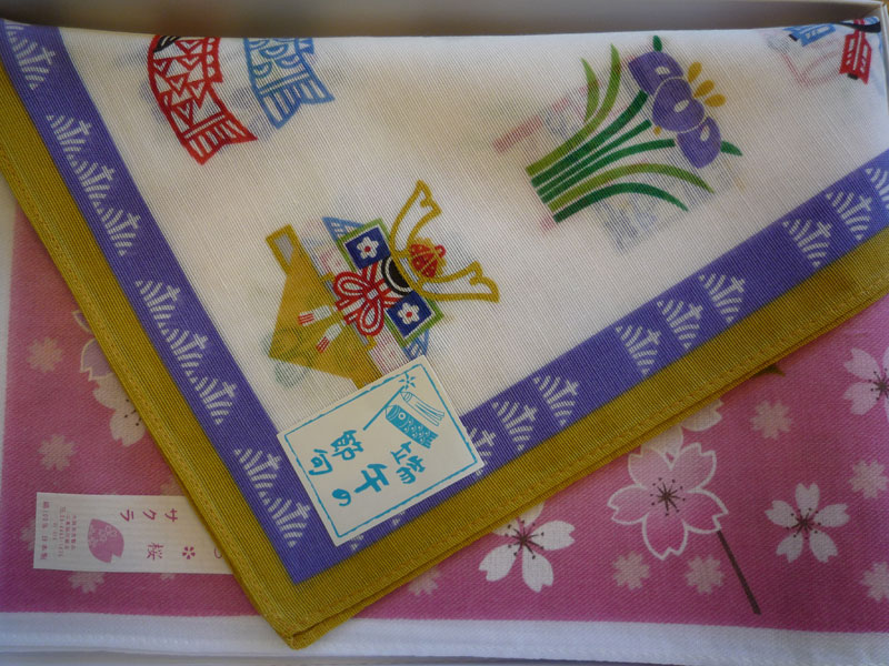 春ですので、サクラの柄と端午の節句のハンカチにしてみました。