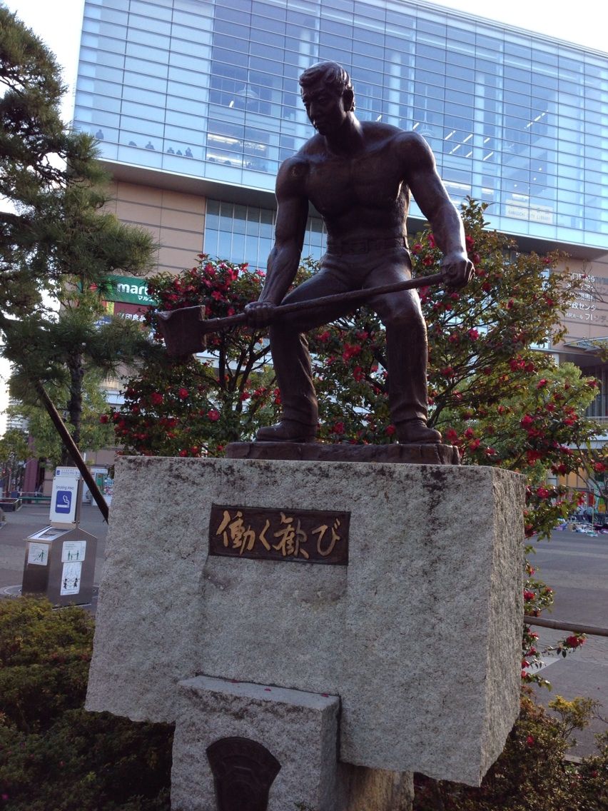 この像は、川口市が鋳物で賑わっている時代の職人さんの姿になっています。