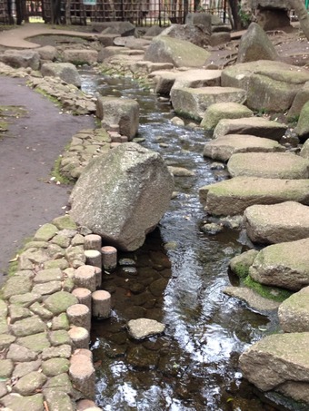 せせらぎの音も柔らかく感じる後谷公園内の小川でした。