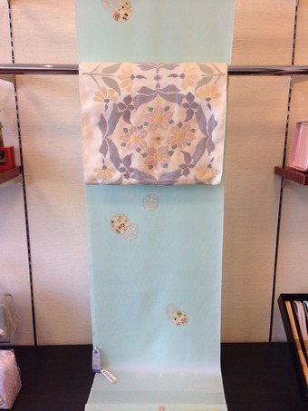 店内には出来るだけ明るい色鮮やかなきものと帯びを飾ってみました。