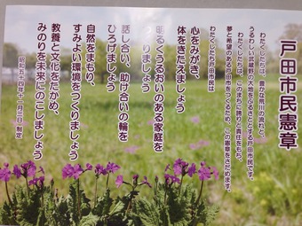 戸田市内の公園や公共施設で見かける戸田市民憲章について、じっくり熟読してみると家庭や普段の生活態度などに関する理想とする文言が盛り込まれています。