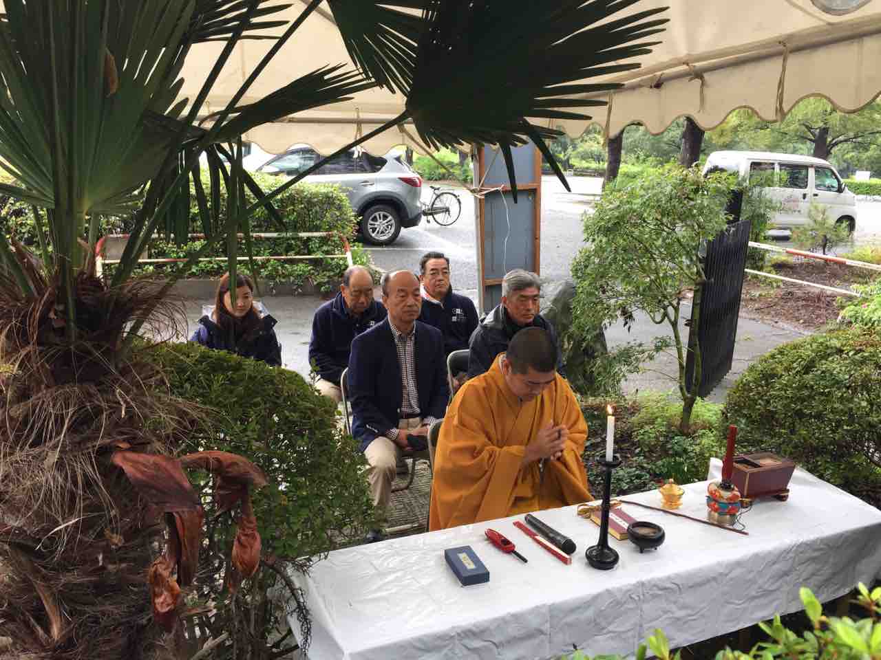 旧観光協会のときは、市長や理事さん市役所職員などが集まり盛大に行われていましたが、旧緑地公社との合併してからは儀式は平等寺副住職さんを迎えて、公社職員だけで行われています。
