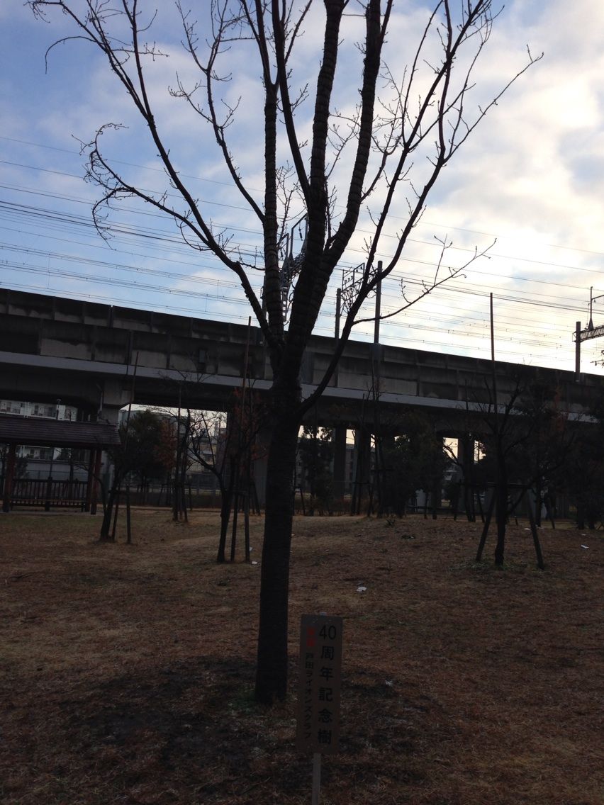 今朝の朝の散歩は、北戸田に向かって歩いて来ましたが、途中で高架線脇にある公園が目に入ってきたので、たしか戸田クラブが40周年記念に贈呈した桜の木を見つけたので成長を確認してきました。