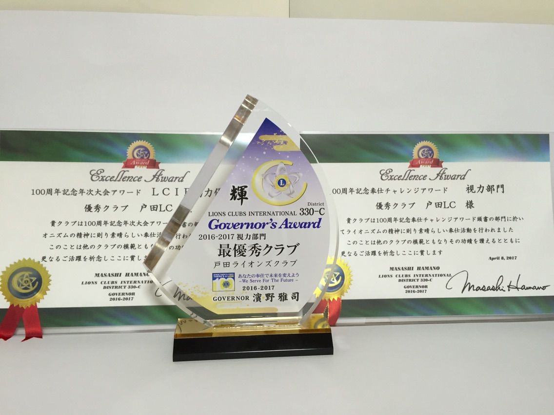 ライオンズクラブ年次大会にて、視力部門でガバナーズアワード最優秀賞を頂けました。