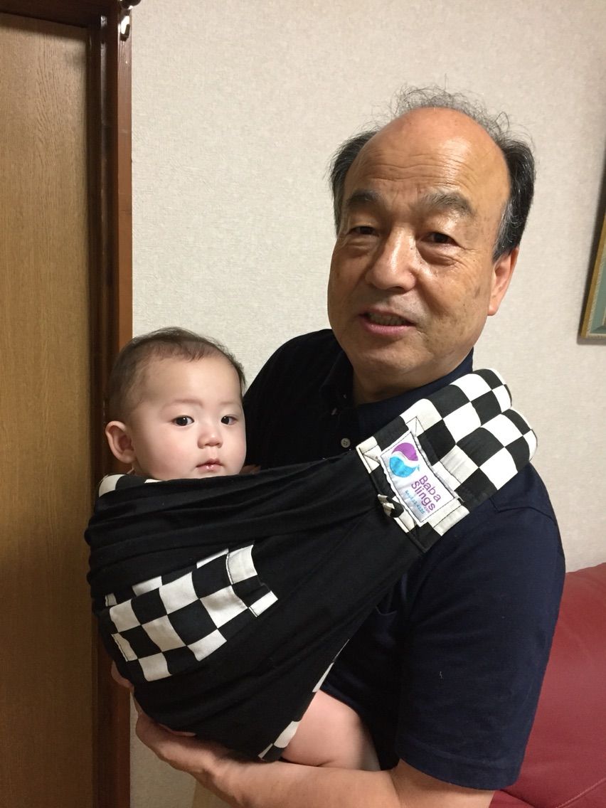 初めてのババスリングで、孫を寝かせる準備をしています。