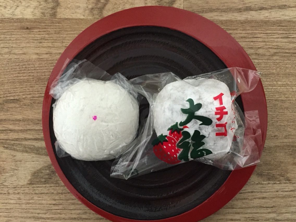 今朝の散歩で蕨方面に足をのばしたので、旧中山道の船橋屋でイチゴ大福と薄皮まんじゅうを買って帰り、今日お見えになったお客様にお茶うけに出したいと思っています。