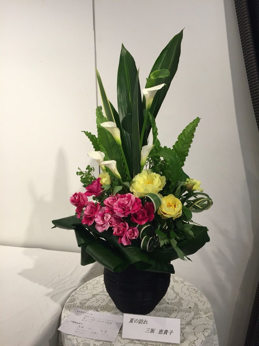 今年は、籠を使用した縦を強調した作品で出品していました。