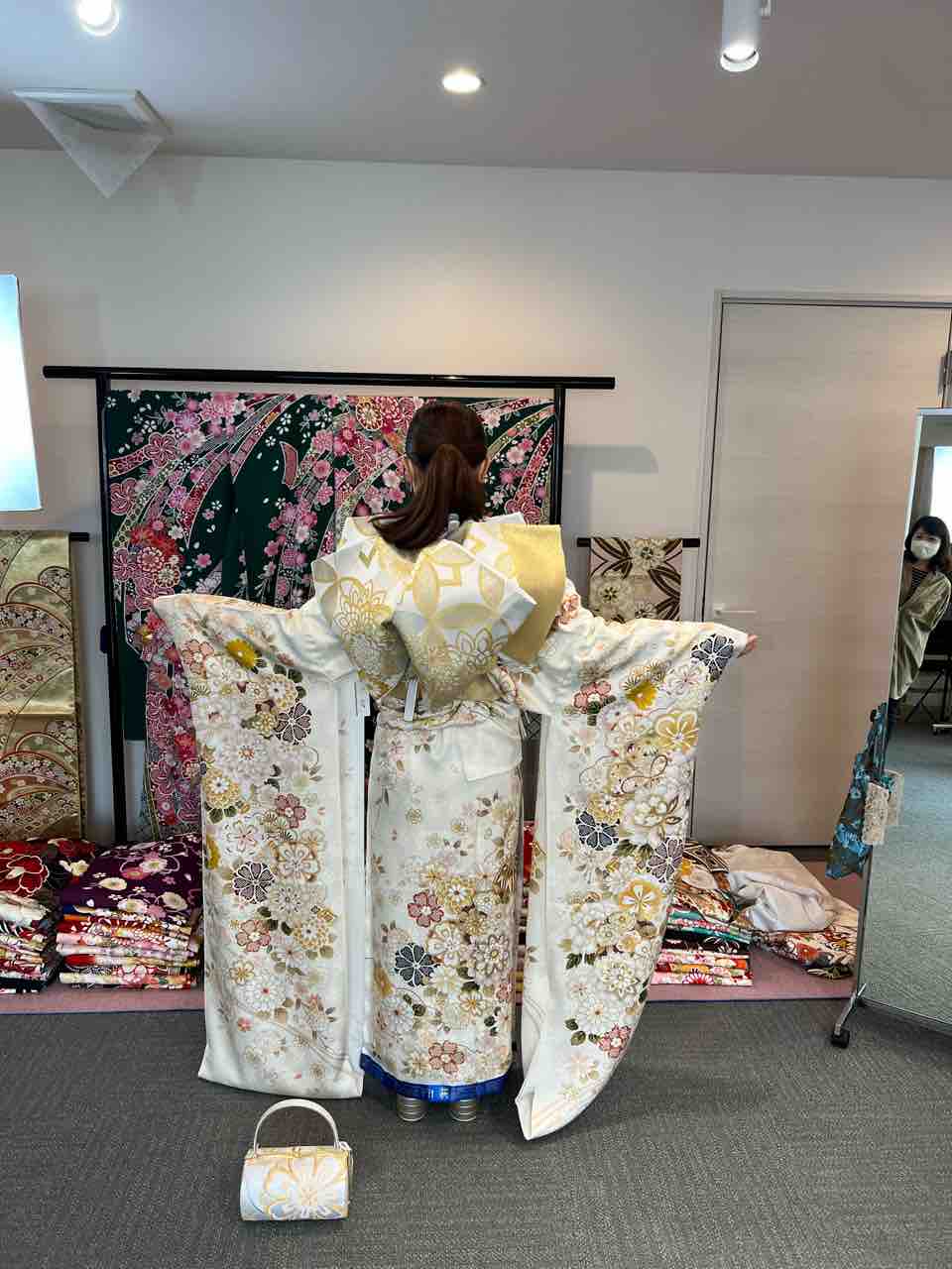 その前に当店全館を使用しての大好評前撮り会が先になりますね。仕立ても長年培った技術できもの専門店しか出来ない作業を当店加工部が丁寧に仕上げますのでご安心して下さい。